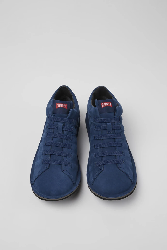 Blue nubuck men’s sneakers with 51% recycled EVA outsoles.