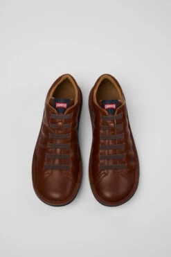 Brown lightweight shoe for men. Full-grain leather and elastic laces.