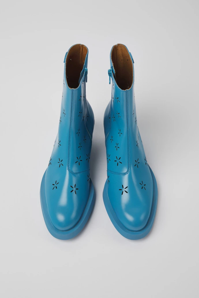 Blue leather women’s boots with cut-out flower motif, OrthoLite® Recycled™ non-removable footbeds,