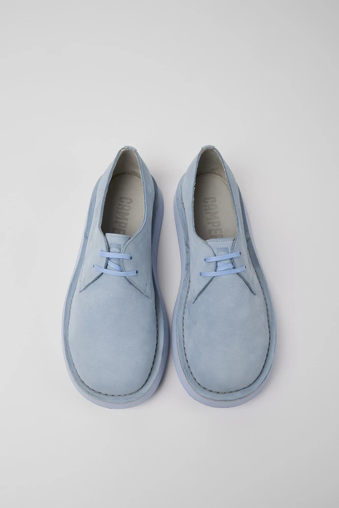 Blue leather lace-up men’s shoes with 100% rubber outsoles (51% natural).