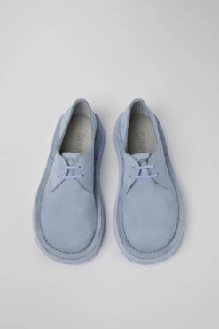 Blue leather lace-up women’s shoes with 100% rubber outsoles (51% natural).