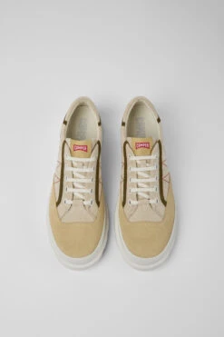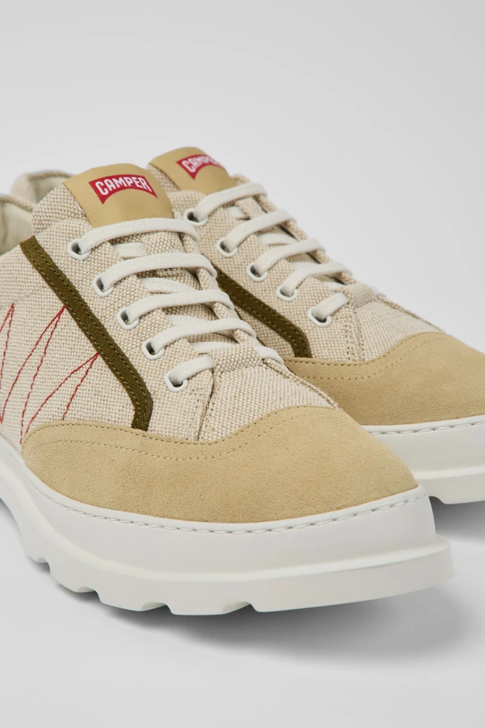 Beige and green recycled cotton, recycled hemp, and nubuck men’s sneakers with XL EXTRALIGHT® outsoles.