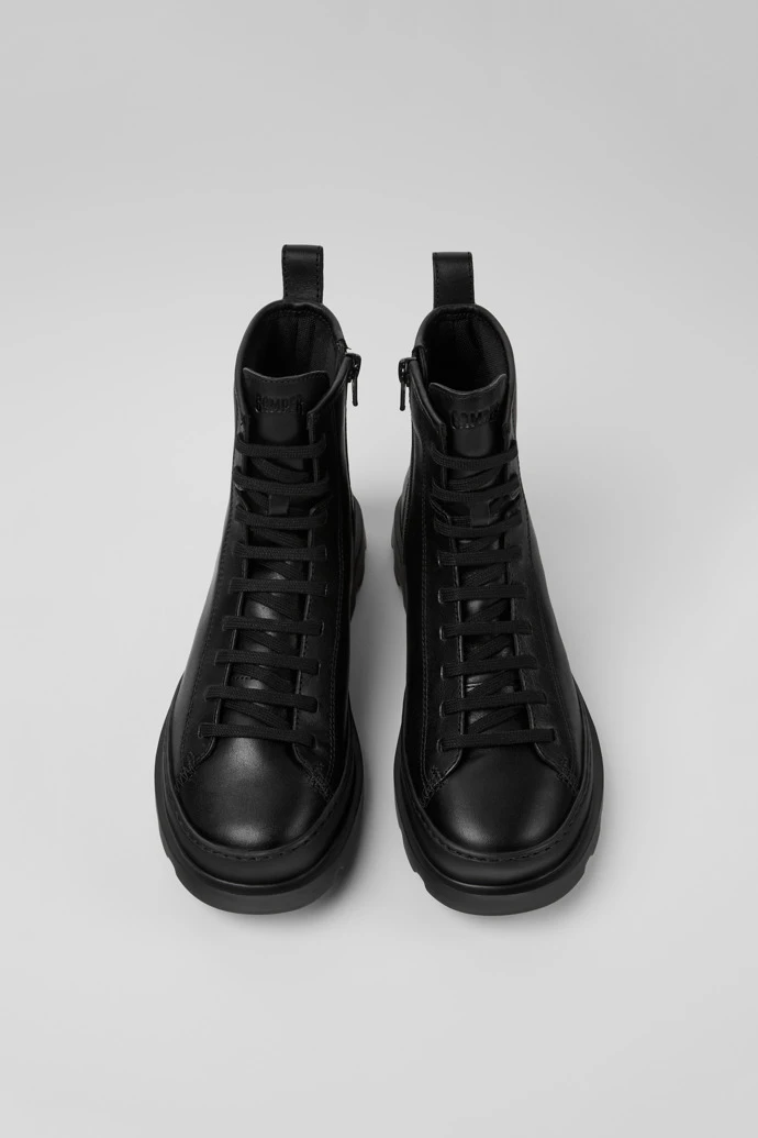 Black medium lace boot for women. Full-grain leather and EVA outsole.