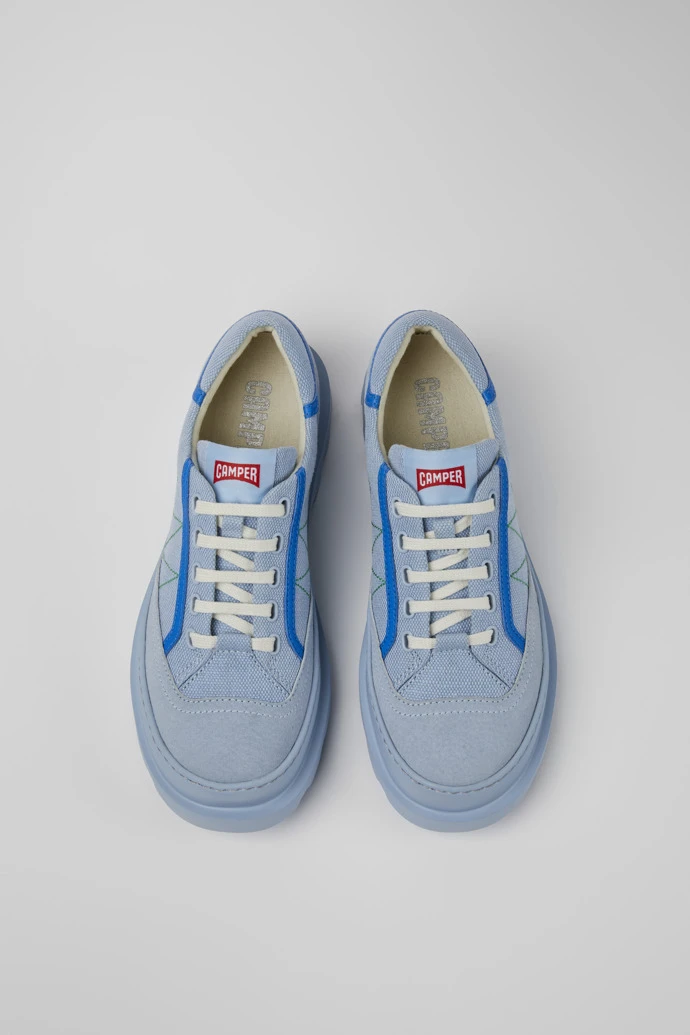 Blue recycled cotton, recycled hemp, and leather women’s sneakers with XL EXTRALIGHT® outsoles.