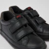 Gray leather kids’ ankle boots with OrthoLite® Recycled™ removable footbeds and rubber outsoles.