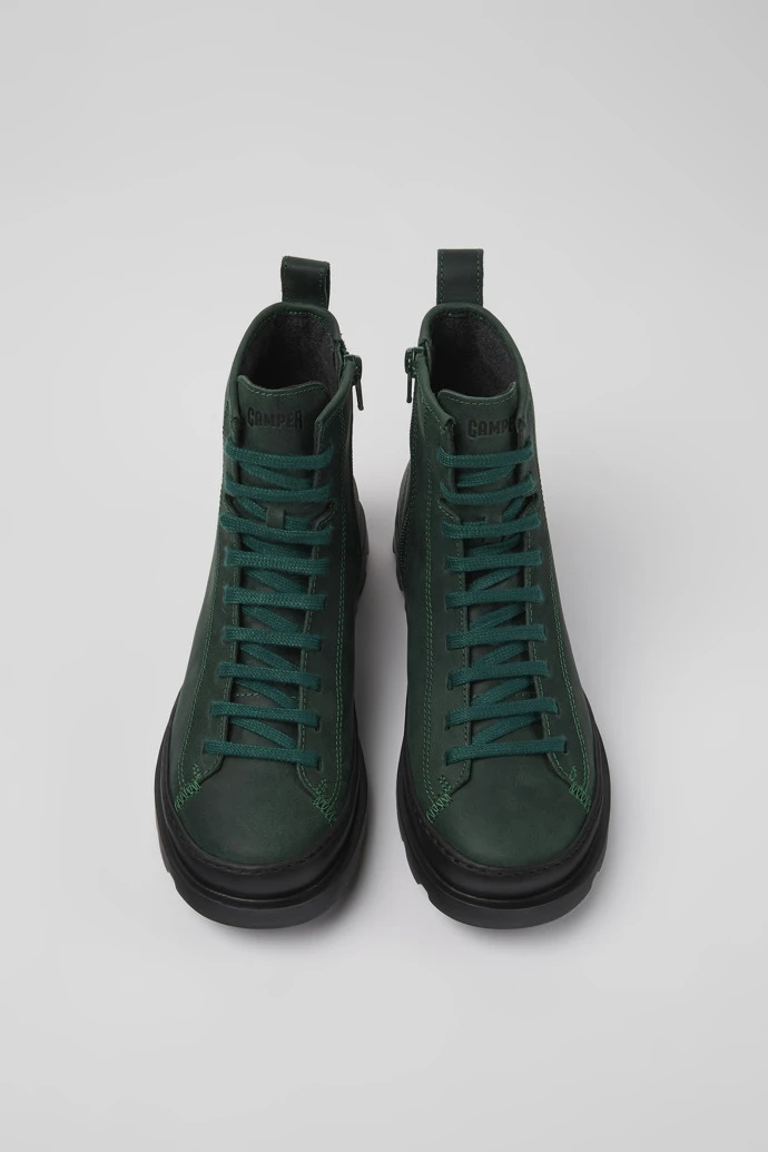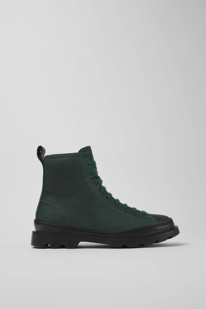 Green nubuck women’s lace-up boots with EVA outsoles.