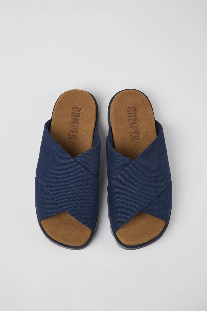 Blue recycled cotton men’s sandals with XL EXTRALIGHT® outsoles.