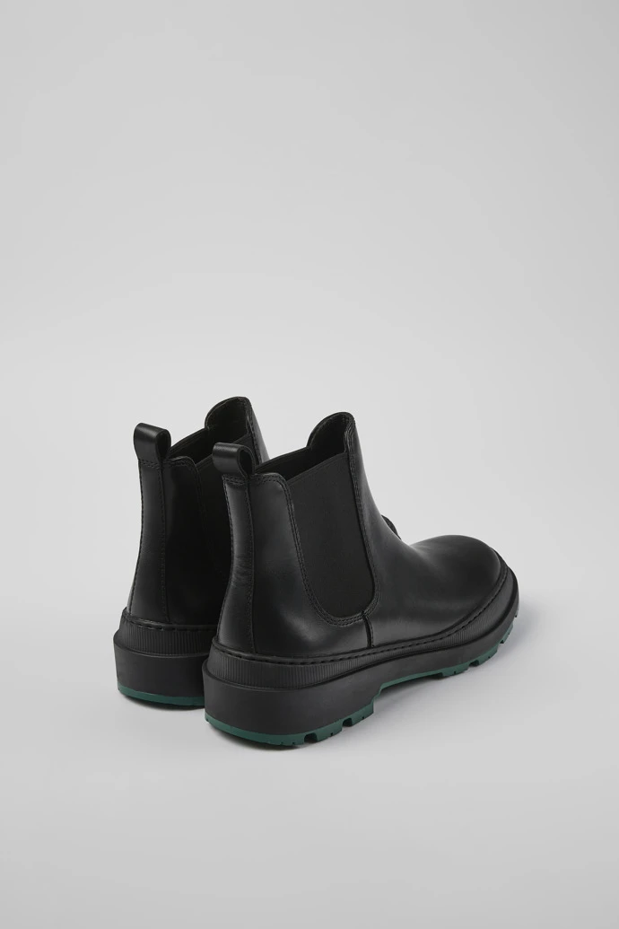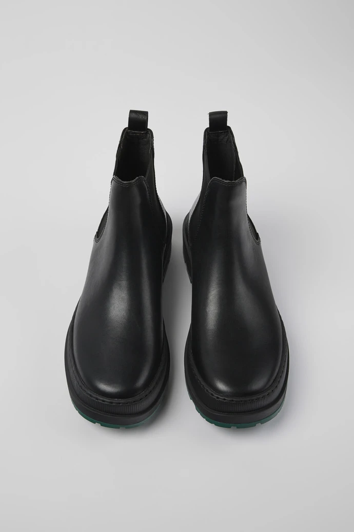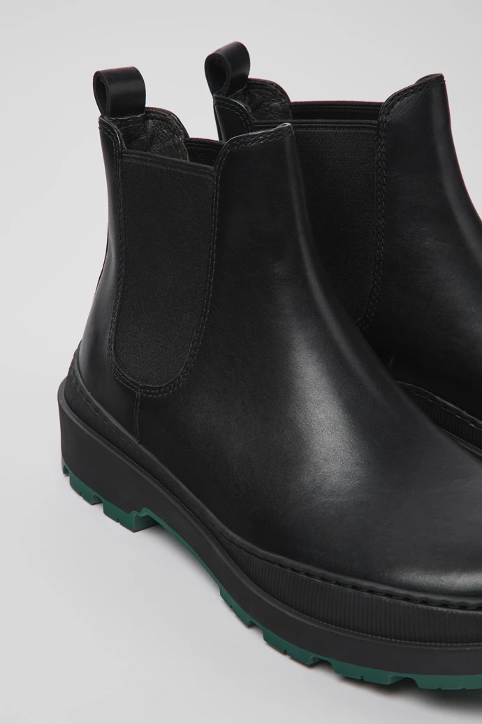 Black leather men’s ankle boots with EVA midsoles, OrthoLite® Recycled™ footbeds, and Michelin rubber outsoles (27% natural).