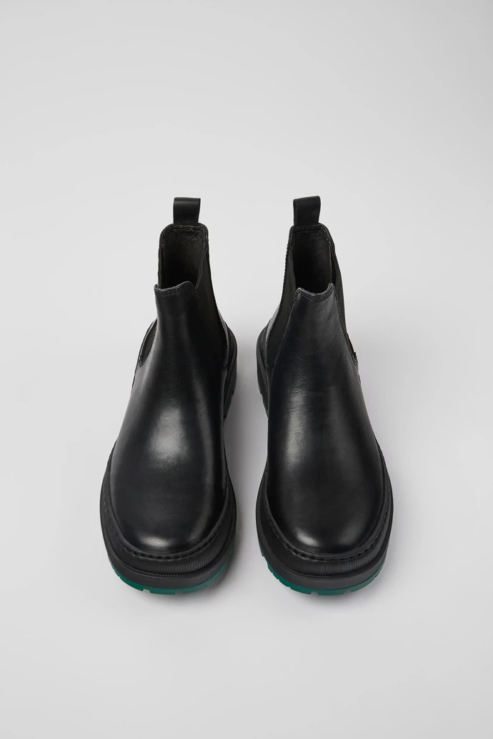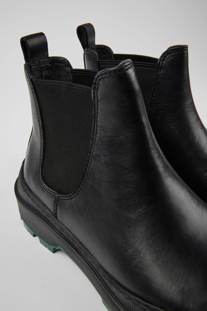 Black leather women’s ankle boots with EVA midsoles, OrthoLite® Recycled™ footbeds, and Michelin rubber outsoles (27% natural).