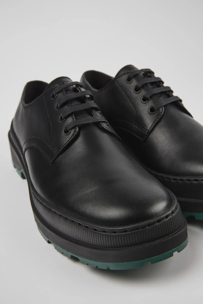 Black leather men’s shoes with EVA midsoles, OrthoLite® Recycled™ footbeds, and Michelin rubber outsoles (27% natural).