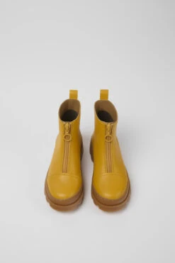 Yellow leather boots for kids, with zip-up closing system, OrthoLiteĀ® footbed and 100% rubber outsoles.