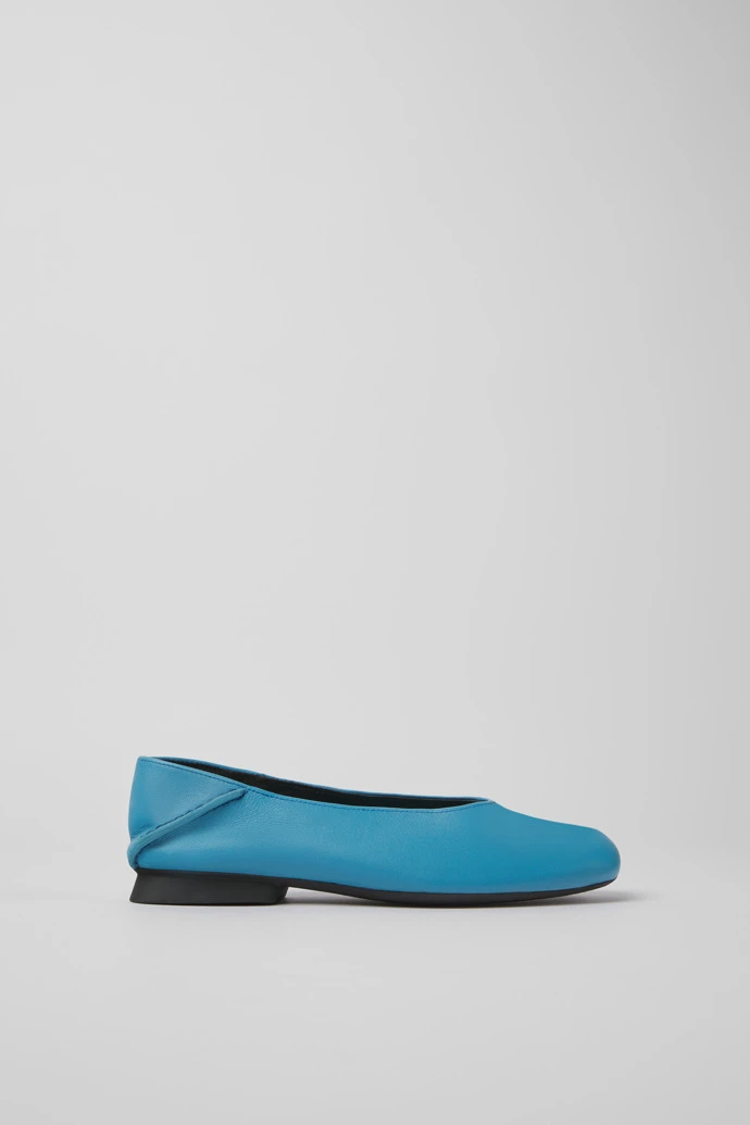 Blue leather women’s ballerina flats with OrthoLite® Recycled™ non-removable footbeds and TPU outsoles (20% recycled).
