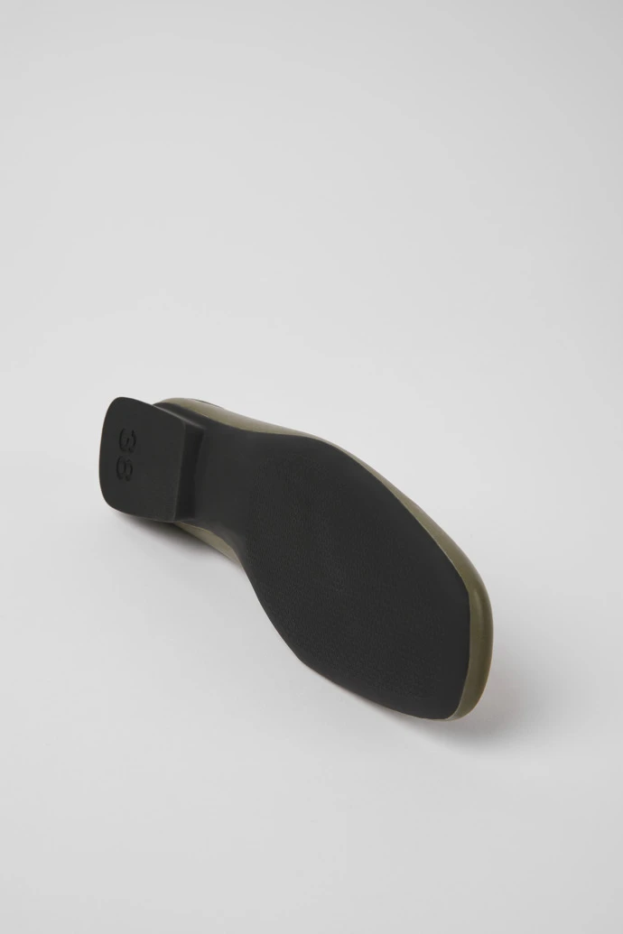 Green leather women’s ballerina flats with OrthoLite® Recycled™ non-removable footbeds and TPU outsoles (20% recycled).
