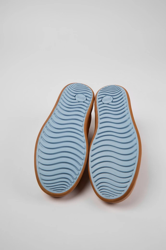 Brown nubuck men’s shoes with OrthoLite® Recycled™ removable footbeds and rubber outsoles.