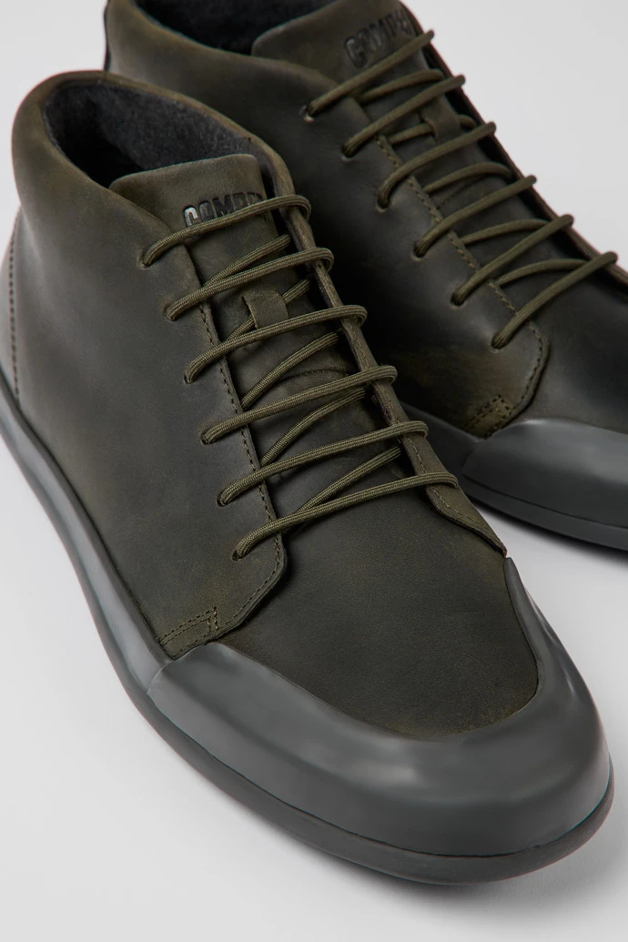 Dark green leather men’s ankle boots, with OrthoLite® Recycled™ footbeds and rubber outsoles (15% recycled).