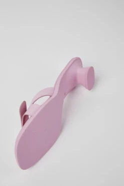 Pink leather women’s sandals with rubber outsoles.