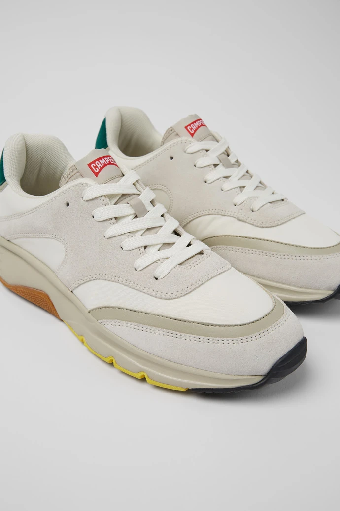Multicolored textile and nubuck men’s sneakers with PU footbeds and and outsoles made with 70% EVA and 30% rubber.