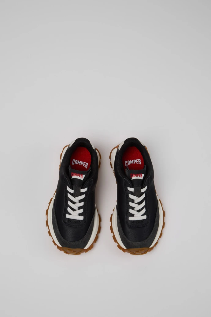 Black nubuck and leather kids’ sneakers with 70% rubber and 30% EVA outsoles.