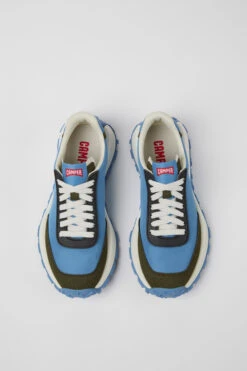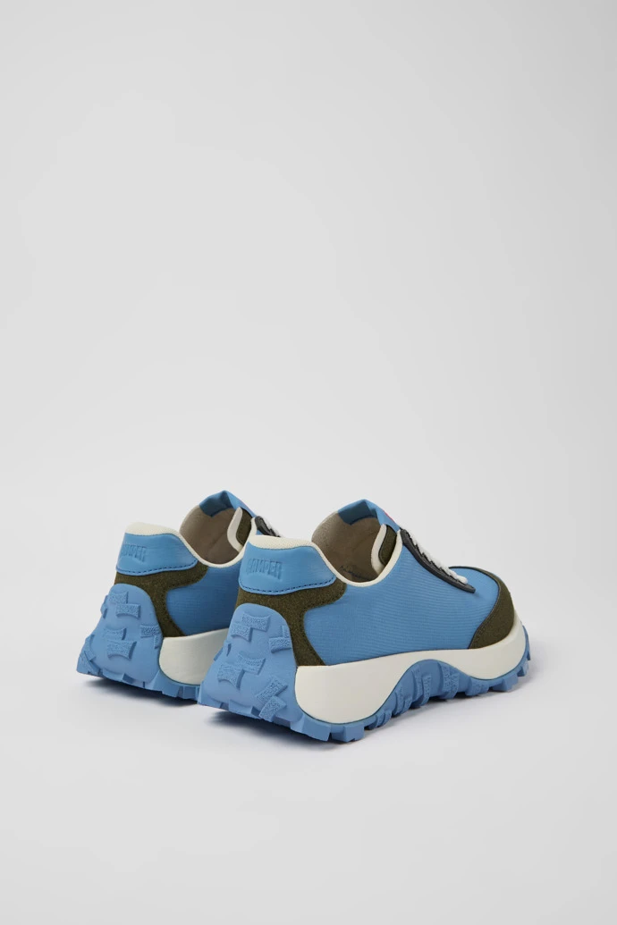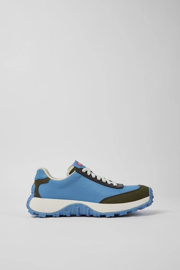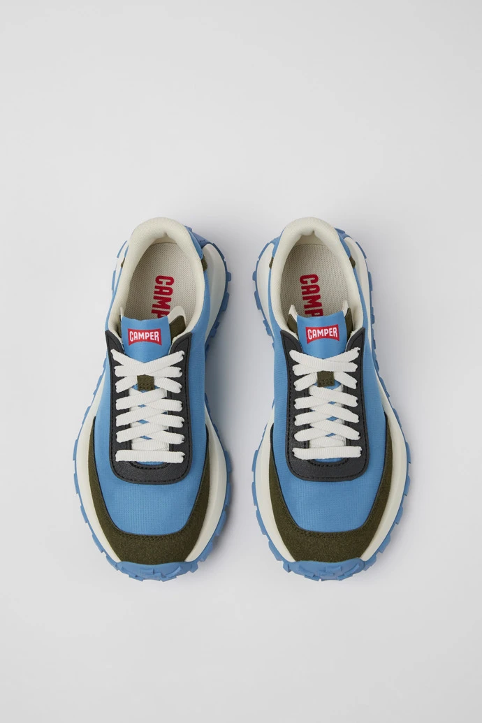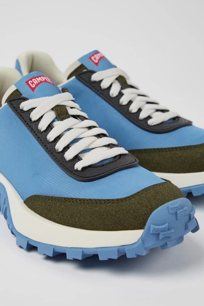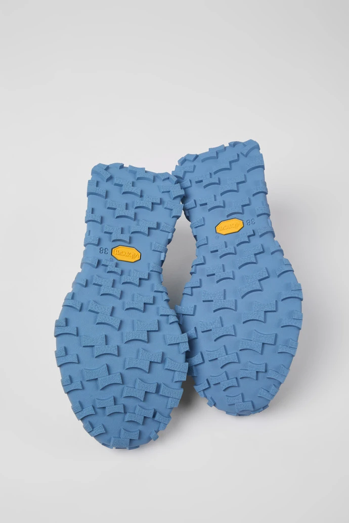 Blue textile and nubuck women’s sneakers with OrthoLite® Recycled™ removable footbeds and Vibram outsoles (30% rubber, 70% EVA).