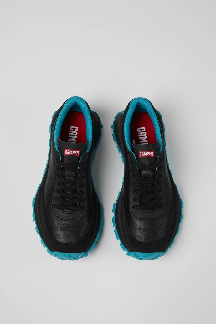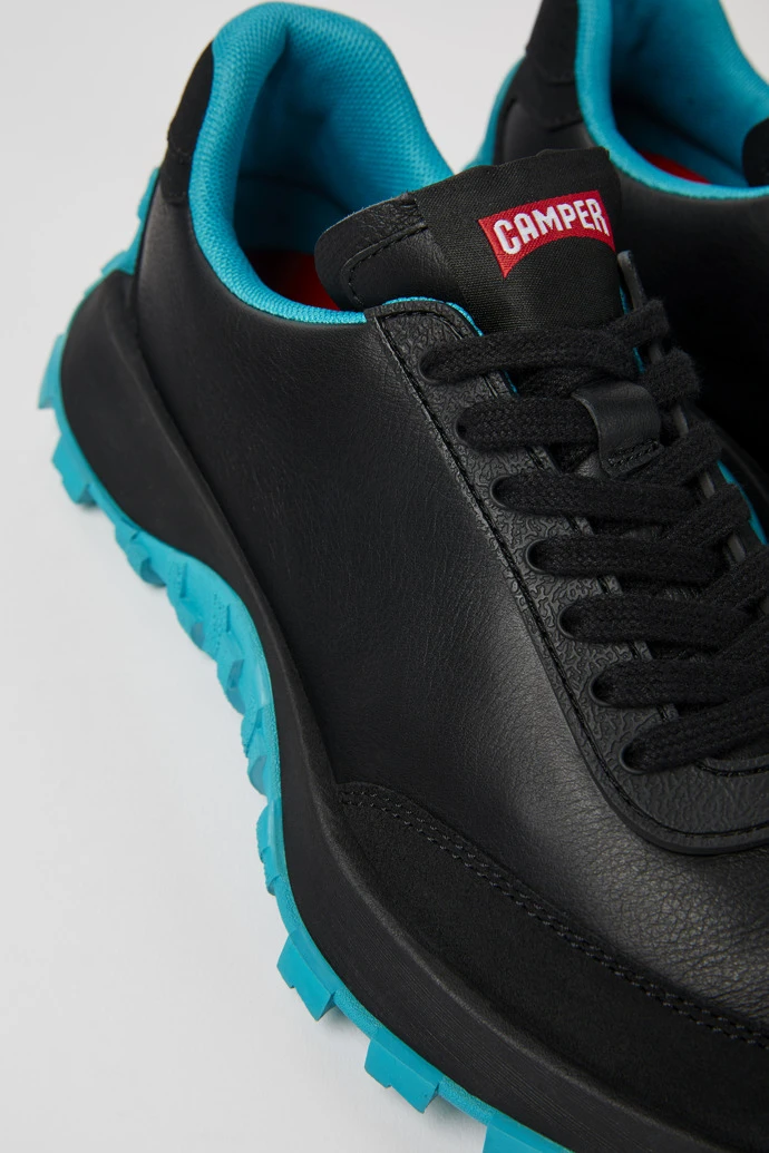 Black leather and nubuck women’s sneakers with OrthoLite® Recycled™ removable footbeds and Vibram outsoles (30% rubber, 70% EVA).