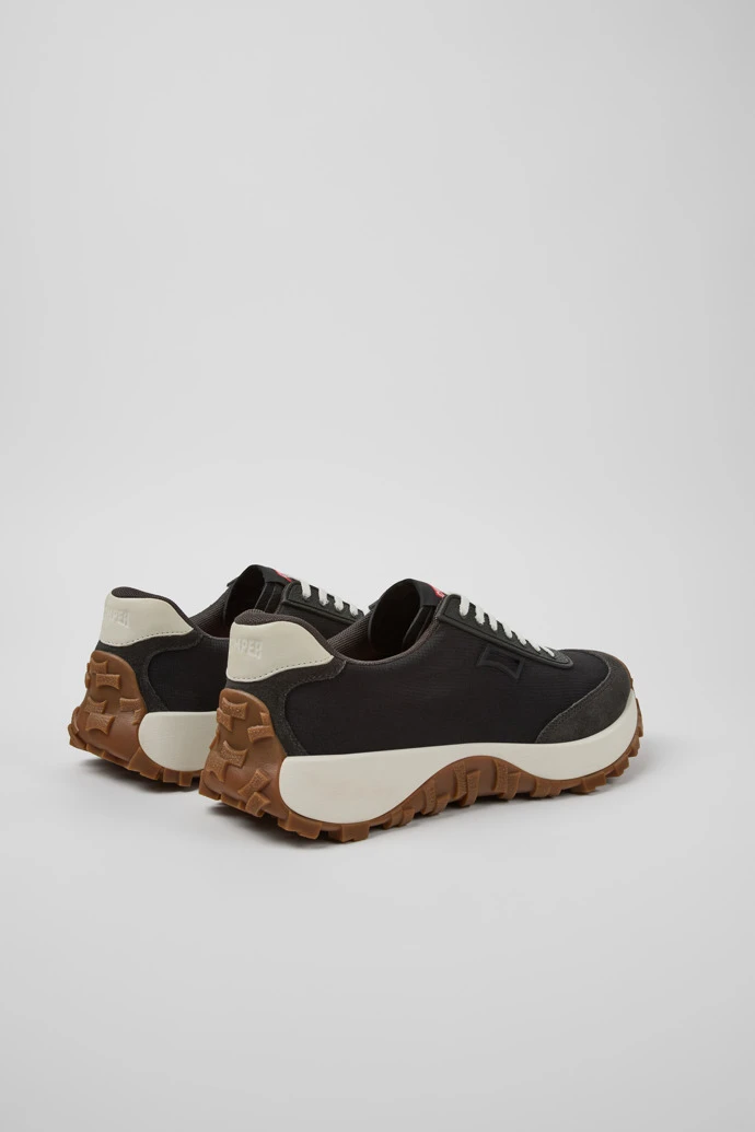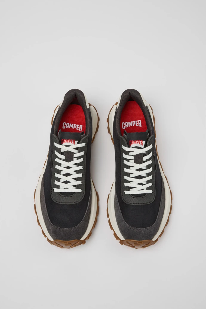 Black recycled PET and nubuck men’s sneakers with OrthoLite® Recycled™ removable footbeds and Vibram outsoles (30% rubber, 70% EVA).