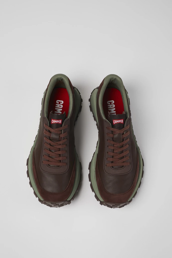 Burgundy leather and nubuck men’s sneakers with OrthoLite® Recycled™ removable footbeds and Vibram outsoles (30% rubber, 70% EVA).