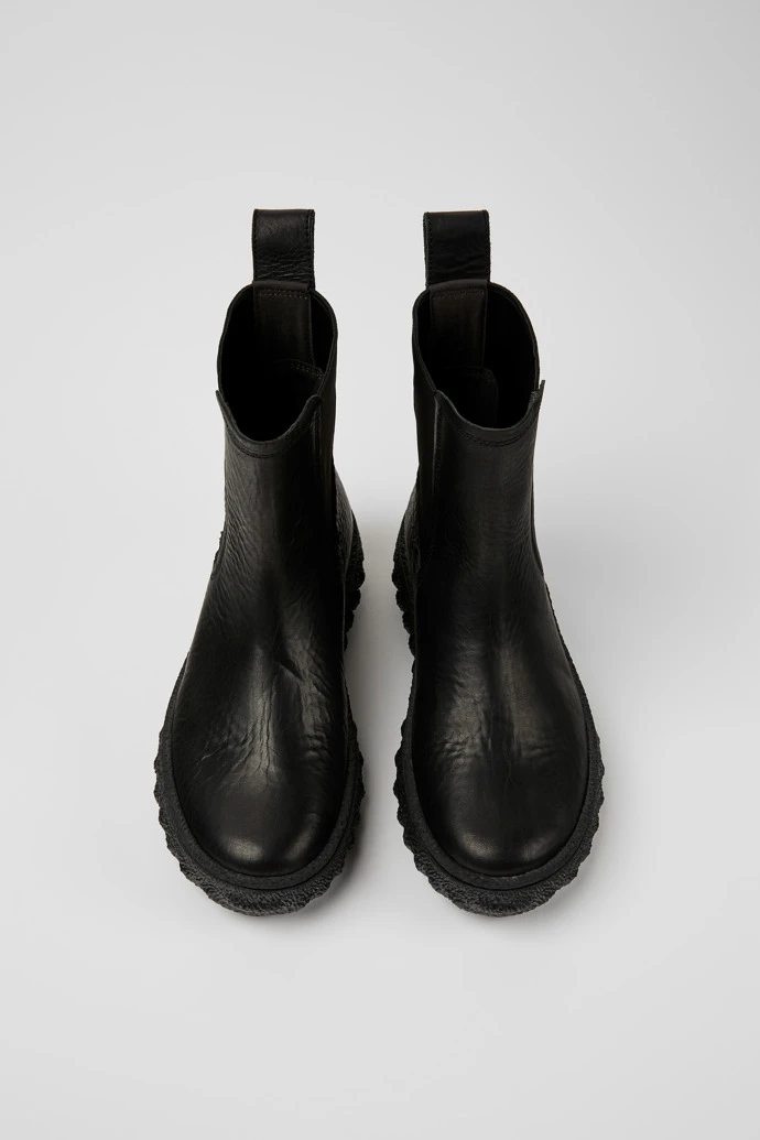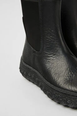 Black leather women’s ankle boots with OrthoLite® Recycled™ footbeds and Michelin rubber outsoles (27% natural).