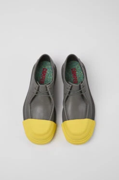 Gray responsibly raised leather women’s shoes with removable toe caps, OrthoLite® Recycled™ removable footbeds, and rubber outsoles (40% natural, 23% recycled).