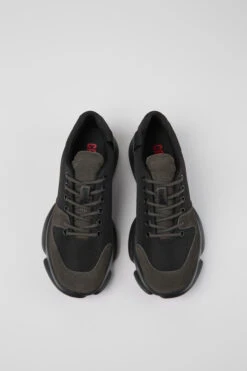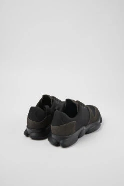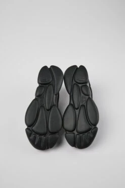 Black leather and recycled PET women’s sneakers with OrthoLite® Recycled™ removable footbeds and XL EXTRALIGHT® Organix™ 3.0 outsoles (30% bio-circular compounds).