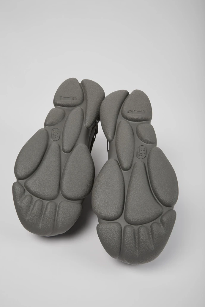 Gray leather and textile men’s sneakers with OrthoLite® Recycled™ removable footbeds and XL EXTRALIGHT® Organix™ 3.0 outsoles (30% bio-circular compounds).