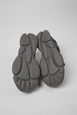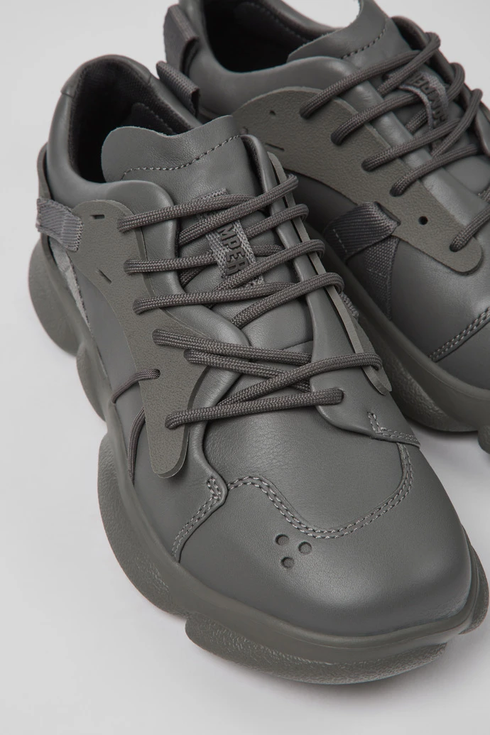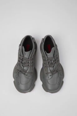 Gray leather and textile women’s sneakers with OrthoLite® Recycled™ removable footbeds and XL EXTRALIGHT® Organix™ 3.0 outsoles (30% bio-circular compounds).