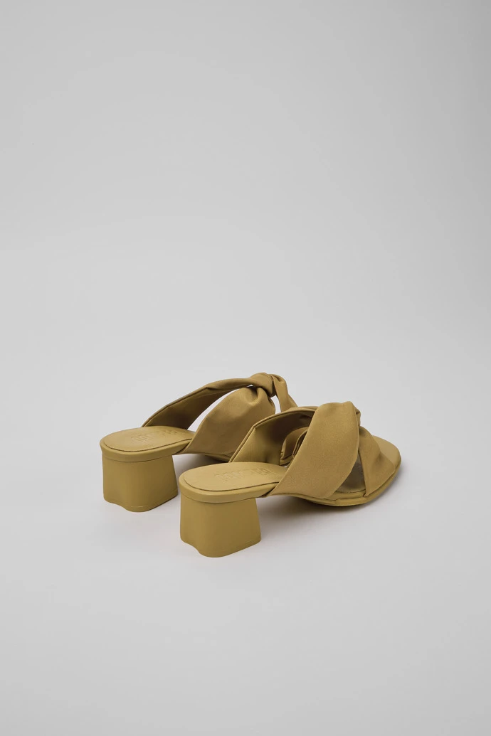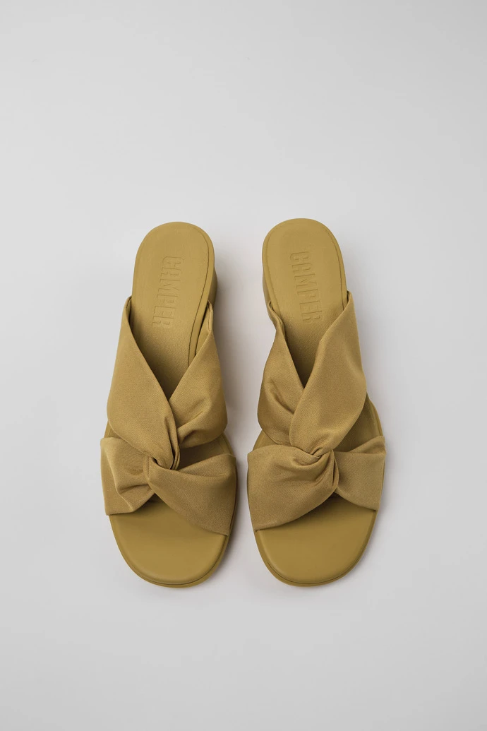 Brown 100% recycled PET women’s sandals with TPU outsoles (20% recycled).