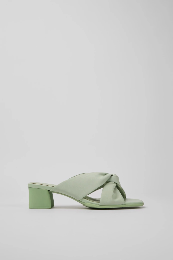 Green 100% recycled PET women’s sandals with TPU outsoles (20% recycled).