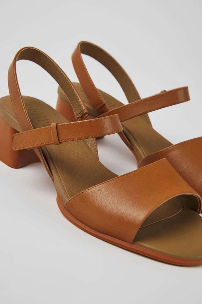 Women’s brown strappy leather sandal with TPU outsole.