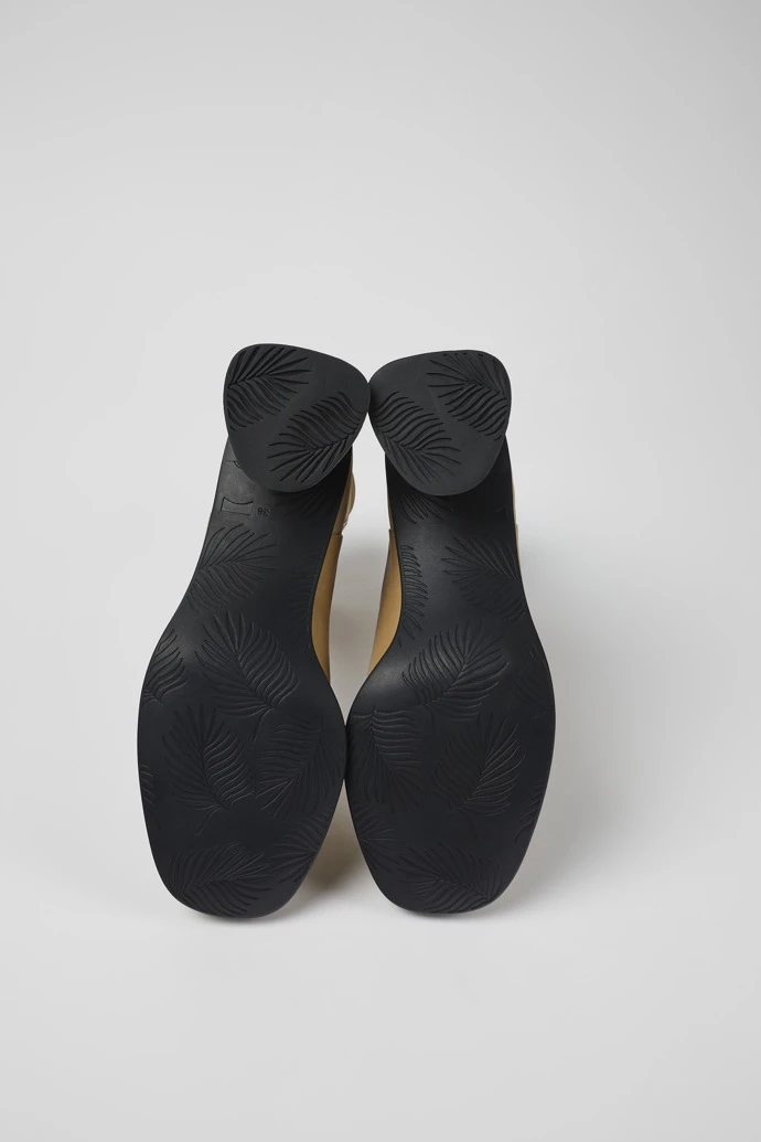 Beige leather and recycled PET women’s boots with OrthoLite® Recycledâ„¢ non-removable footbeds, and rubber and ABS outsoles.