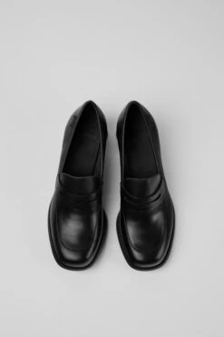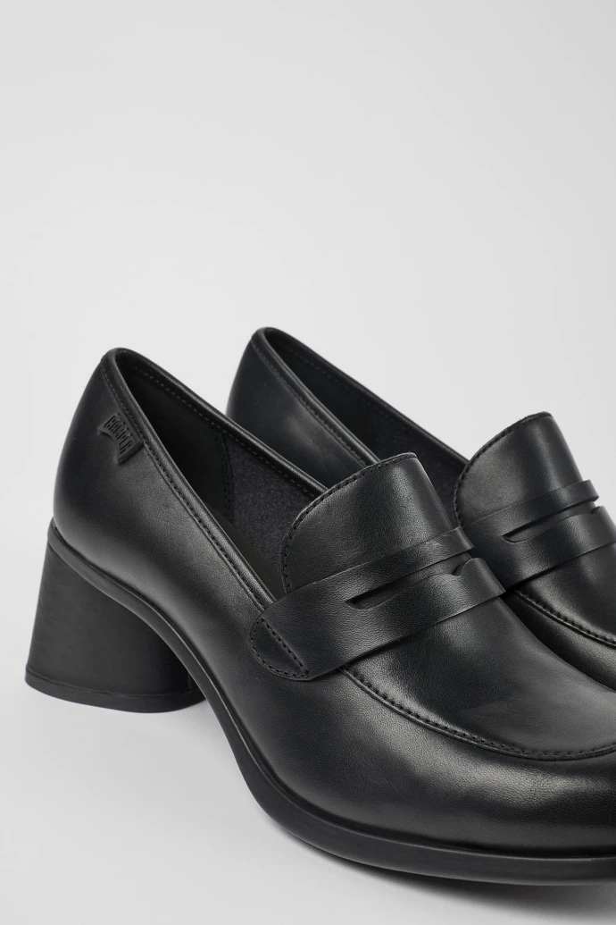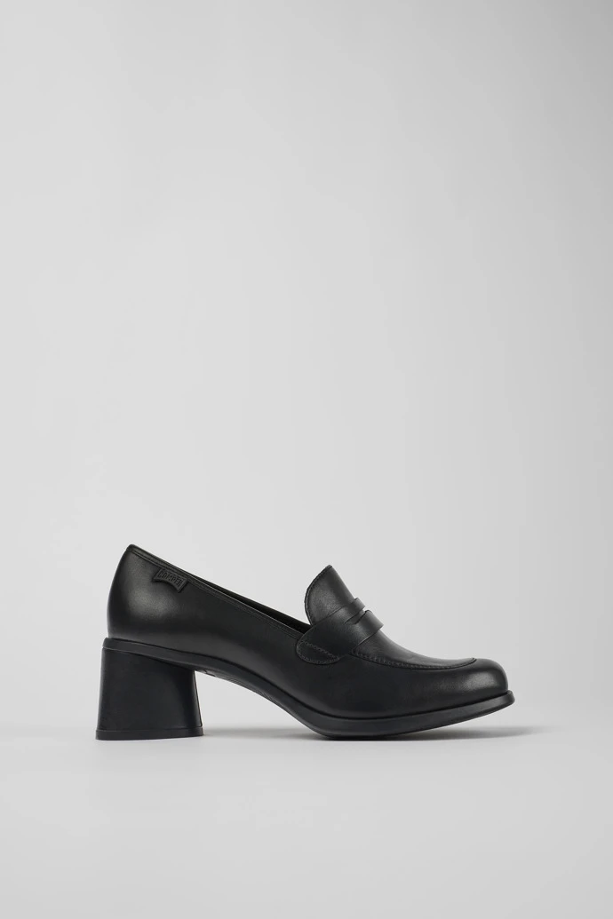 Black leather women’s heels with OrthoLite® Recycled™ footbeds and leather-lined rubber outsoles.