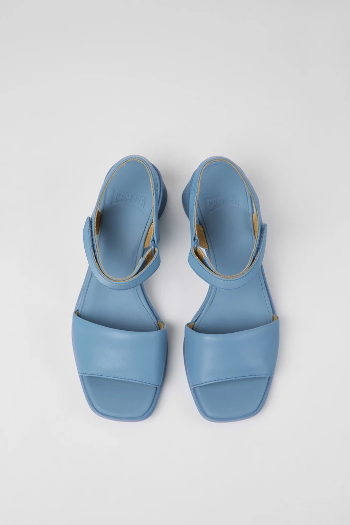 Blue leather women’s sandals with OrthoLite® Recycled™ non-removable footbeds and rubber outsoles.