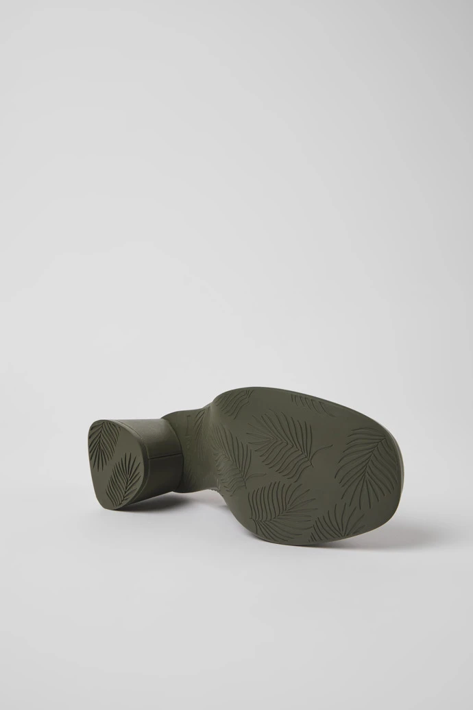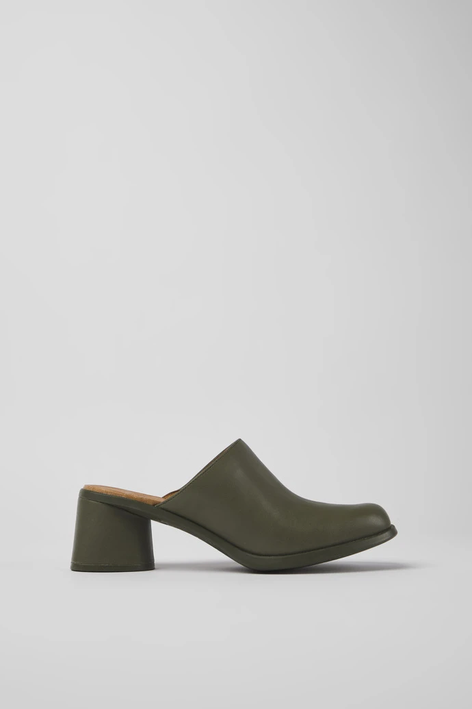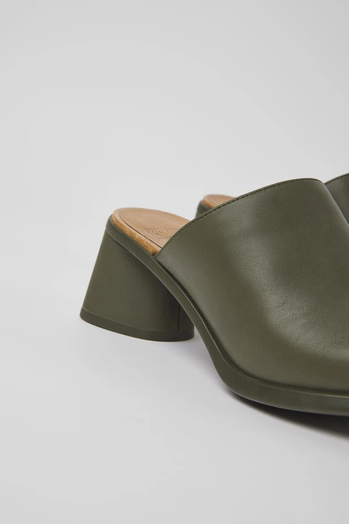 Green leather women’s mules with OrthoLite® Recycled™ non-removable footbeds and rubber outsoles.