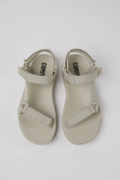 Gray textile women’s sandals with EVA outsoles.