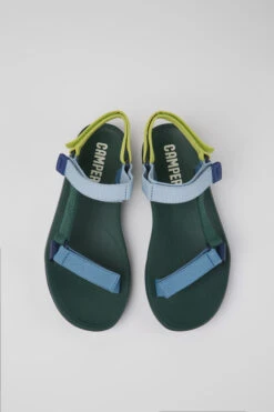 Multicolored textile women’s sandals with EVA outsoles.