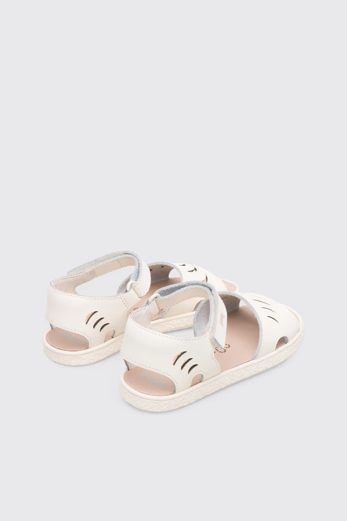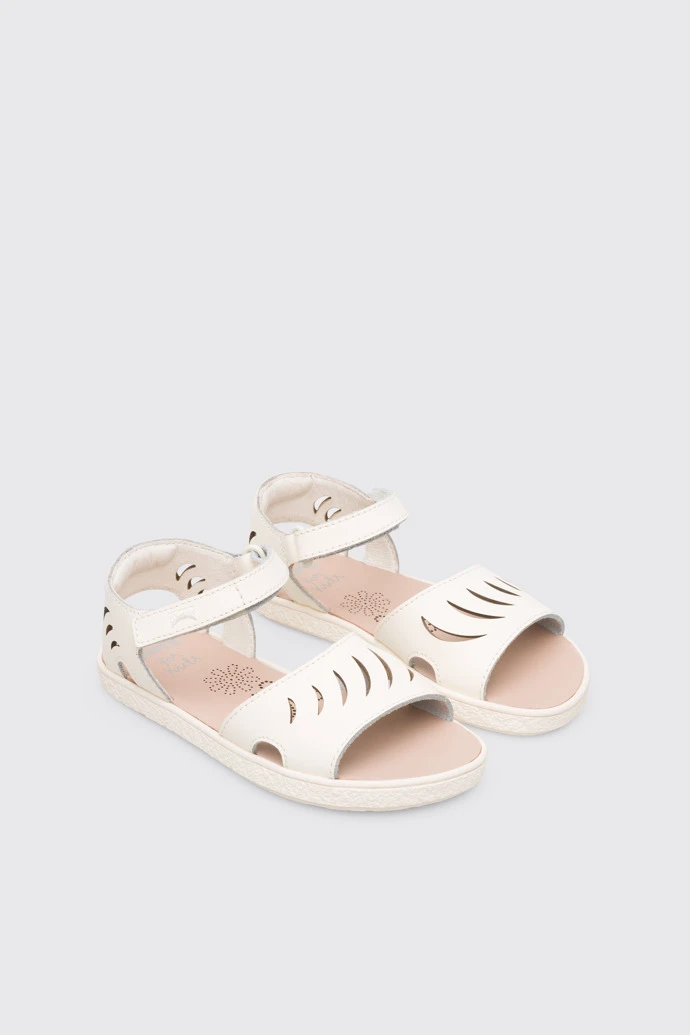 Cream girl’s full-grain leather sandal with rubber outsole.
