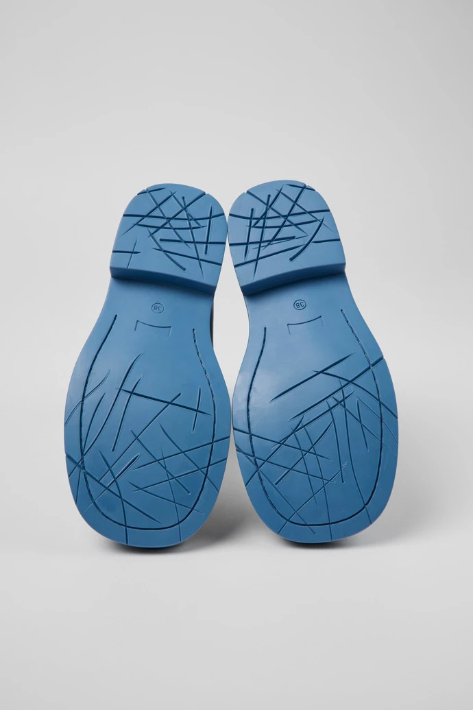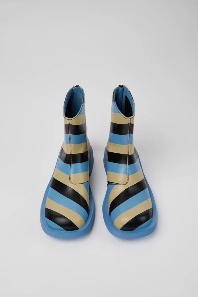 Multicolored striped leather women’s ankle boots with OrthoLite® Recycled™ footbeds and rubber outsoles (30% natural, 20% recycled).