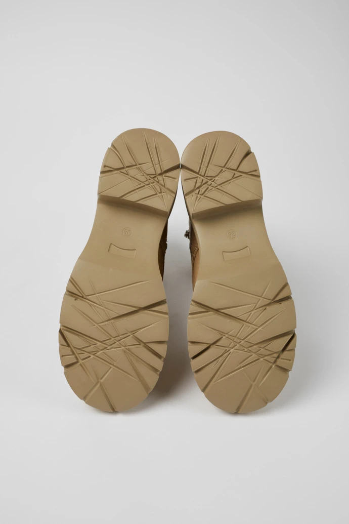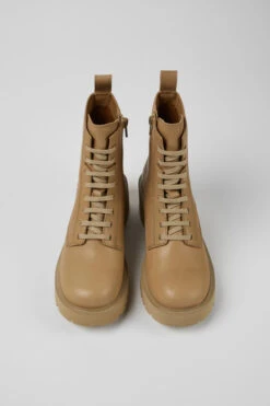 Beige leather lace-up women’s boots with OrthoLite® Recycled™ footbeds and EVA outsoles.