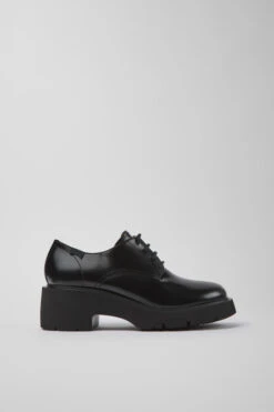 Black leather women’s lace-up loafers with OrthoLite® Recycled™ non-removable footbeds and EVA outsoles.