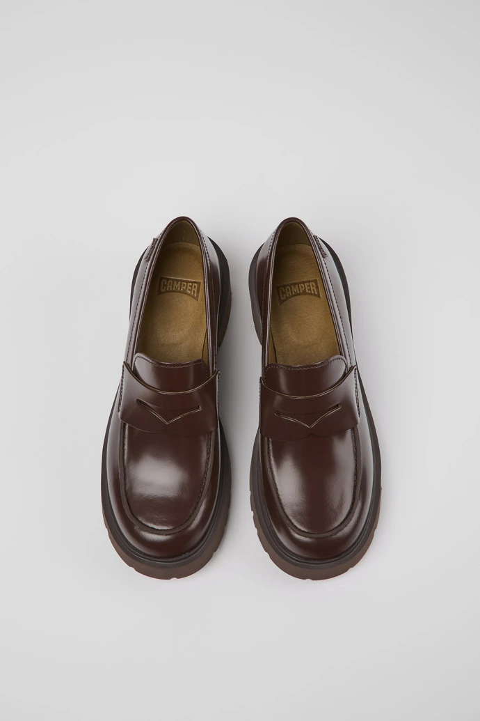 Burgundy leather women’s loafers with OrthoLite® Recycled™ non-removable footbeds and EVA outsoles.
