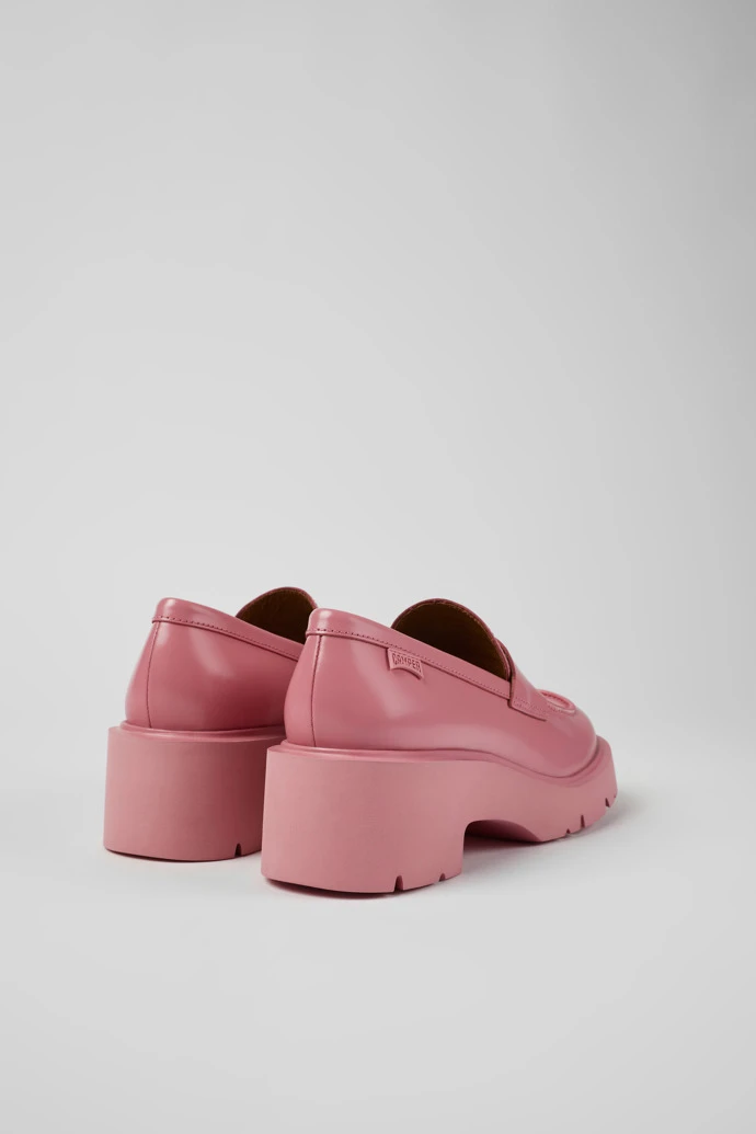 Pink leather women’s loafers with OrthoLite® Recycled™ non-removable footbeds and EVA outsoles.