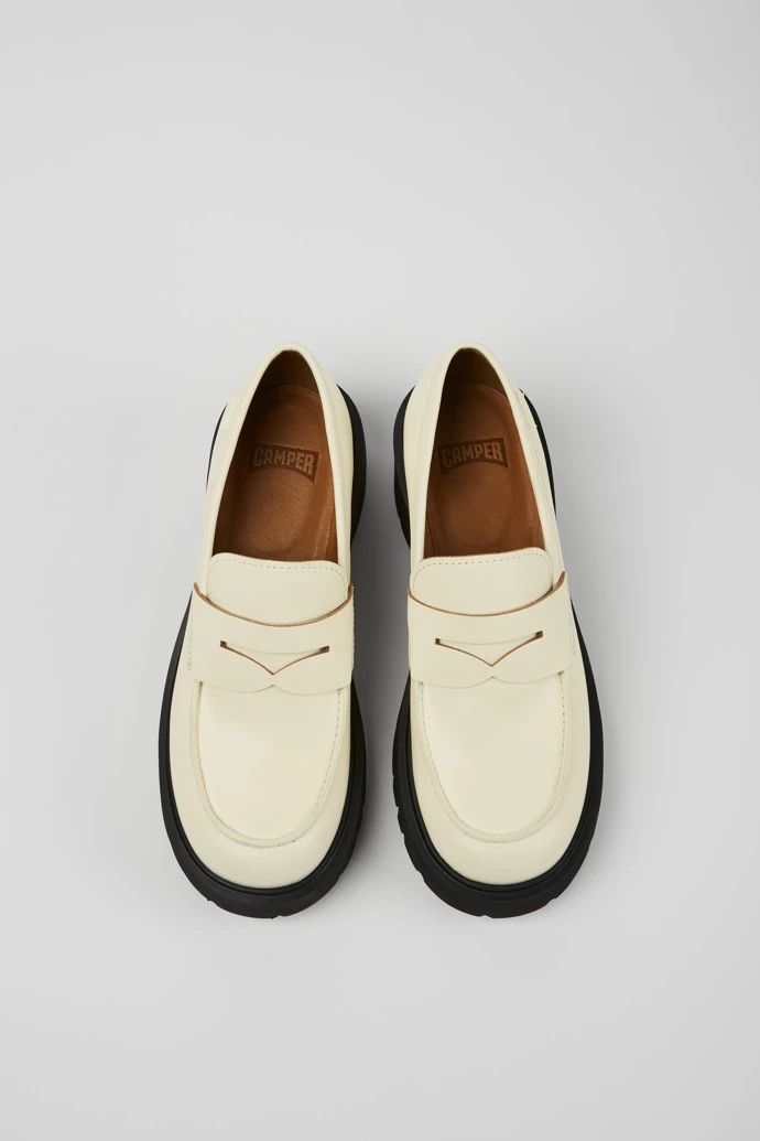 White leather women’s loafers with OrthoLite® Recycled™ non-removable footbeds and EVA outsoles.