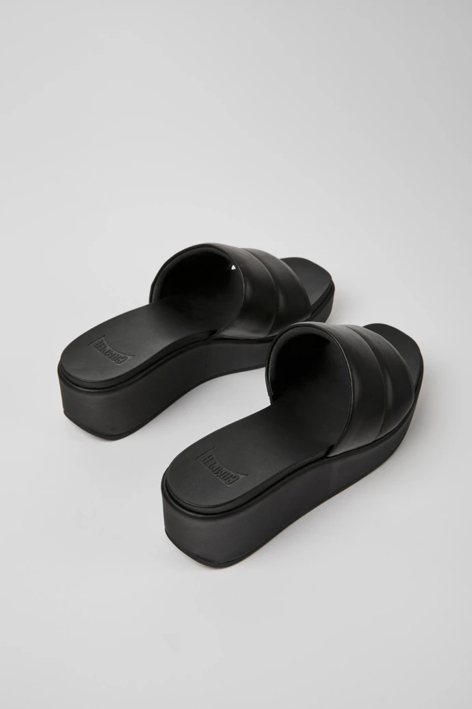 Our Misia women’s flatform sandals are cushioned platforms that offer a stable height and a sophisticated silhouette wrapped in soft and elegant monochrome leather.