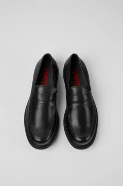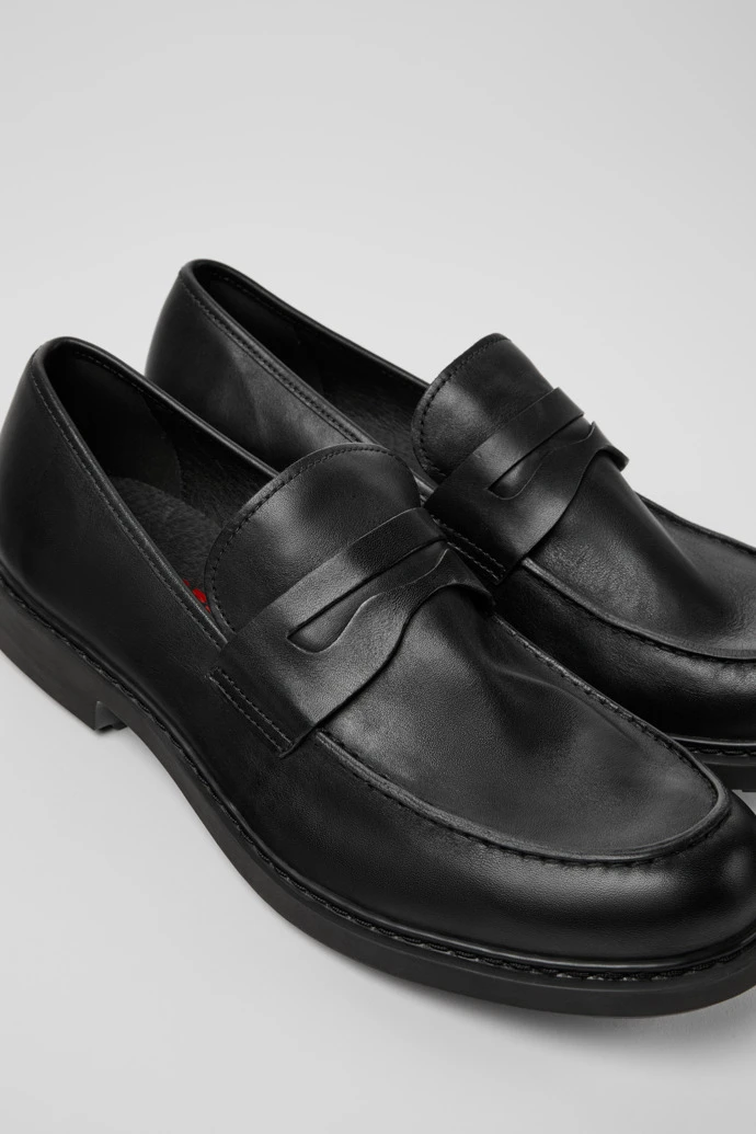 Classic men’s black moccasin with rounded toe. Full grain leather and EVA outsole with vertical cuts.