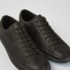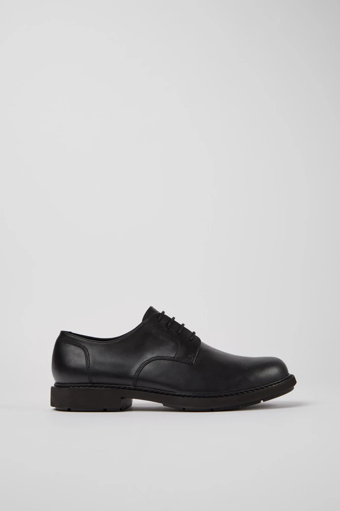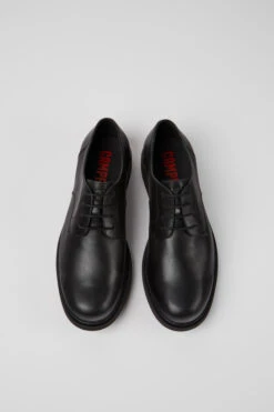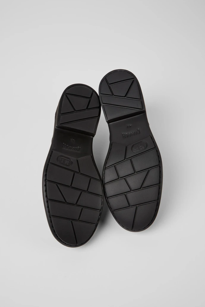 Classic men’s black blucher shoe with rounded toe. Full grain leather and EVA outsole with vertical cuts.